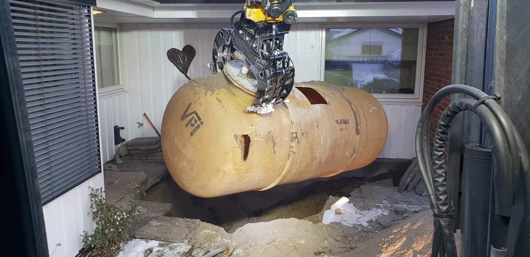 Når tanken er lokalisert, kan du velge om du vil tømme, rengjøre og sanere eller fjerne oljetanken helt. Der det er mulig, anbefaler vi å fjerne oljetanken. Alle tilhørende rør på veggen må også tømmes og fjernes. Det samme gjelder dagtanken inne i huset. Dersom du har en innvendig oljetank i kjelleren, bør denne også tømmes, saneres, demonteres og fjernes.